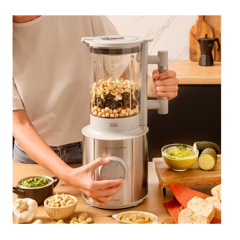 Το μπλέντερ, από την εταιρία Cecotec, διαθέτει φινίρισμα από ανοξείδωτο ατσάλι και ισχύ 1800 W (max. 2700 W). Εξοπλισμένο με την κατοχυρωμένη με δίπλωμα ευρεσιτεχνίας τεχνολογία Total Destroy, η οποία επιτρέπει την αντίθετη κίνηση των λεπίδων για να ψιλοκόψετε ακόμα και τα πιο σκληρά τρόφιμα χωρίς κόπο.