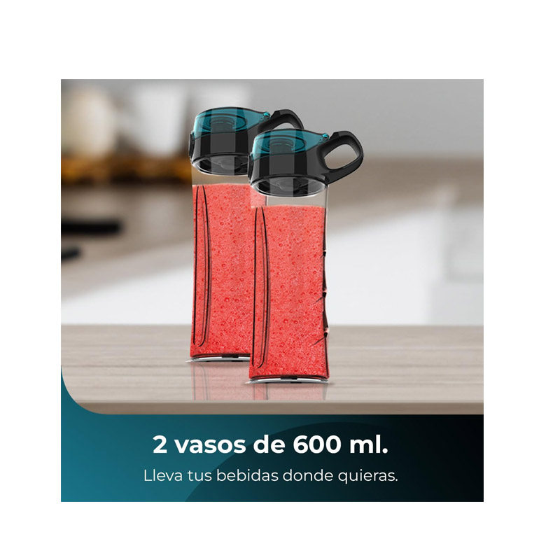 Οι λεπίδες του, έχουν σχεδιαστεί για να επιτυγχάνουν τις πιο κρεμώδεις και υγιεινές υφές για την καθημερινή σας μέρα. Έχουν μια μαύρη επίστρωση τιτανίου, η οποία βελτιώνει την οξύτητά τους και την ικανότητά τους να συνθλίβουν και να κόβουν ακόμη και τα πιο σκληρά τρόφιμα. Διαθέτει δύο φορητά ποτήρια 600 ml, ιδανικά για να προετοιμάσετε την ιδανική ποσότητα των αγαπημένων σας ποτών και να τα πάρετε οπουδήποτε θέλετε.