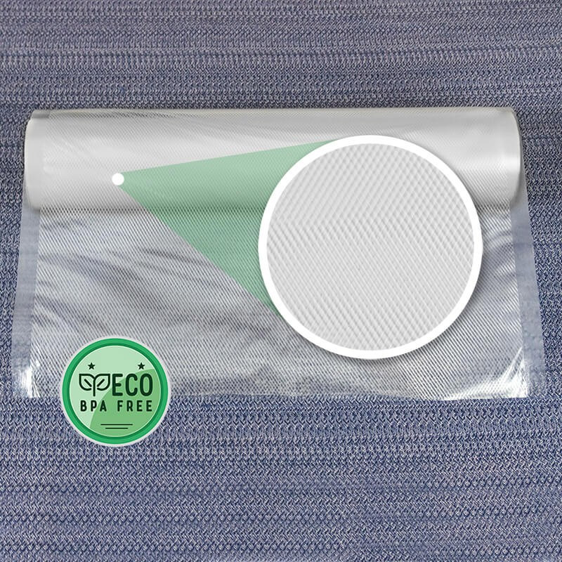 Οι σακούλες για το αεροστεγές σφράγισμα τροφίμων, από την εταιρία Cecotec, διαθέτουν ανάγλυφη επιφάνεια, εξασφαλίζοντας τέλεια λειτουργία και βέλτιστη διατήρηση των τροφίμων. Μπορείτε να επιλέξετε το μέγεθος της σακούλας που θέλετε να χρησιμοποιήσετε κάθε φορά και είναι κατάλληλες για όλες τις συσκευές σφραγίσματος τροφίμων.
