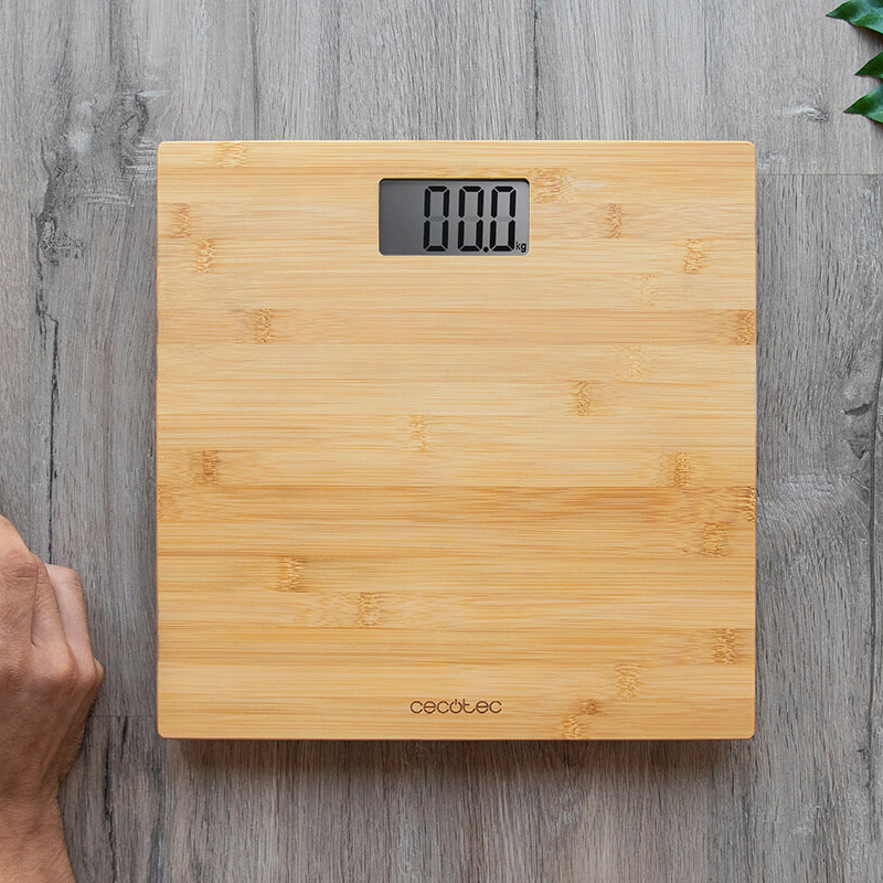 Η ψηφιακή ζυγαριά μπάνιου, από την εταιρία Cecotec, έχει σχεδιαστεί με πλατφόρμα από ξύλο μπαμπού με οικολογική πιστοποίηση. Διαθέτει ευρύ φάσμα μέτρησης, από 5 Kg (11 Lb) έως 180 Kg (400 Lb) με βαθμονόμηση 100 g (0.2 Lb) για αυξημένη αξιοπιστία και 4 αισθητήρες υψηλής ακρίβειας.