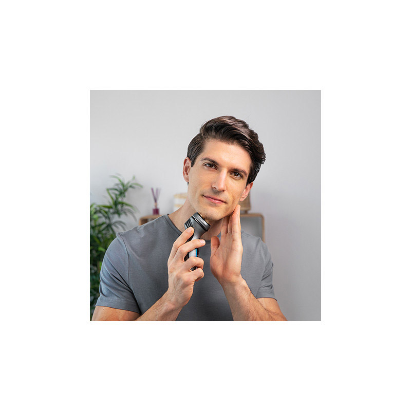 Η μηχανή, έχει εύκολο καθαρισμό με ένα μόνο κλικ, χάρη στο κουμπί της κεφαλής ξυρίσματος, που την ανοίγει εύκολα και επιτρέπει τον γρήγορο και άνετο καθαρισμό. Περιλαμβάνει LED ενδείξεις φόρτισης που σας ενημερώνουν πότε η ξυριστική μηχανή είναι πλήρως φορτισμένη ή όταν η μπαταρία είναι χαμηλή. Με εργονομική λαβή για εύκολο χειρισμό, σχεδιασμένη για να διατηρεί καλύτερο, πιο ασφαλές κράτημα σε όλο το ξύρισμα.