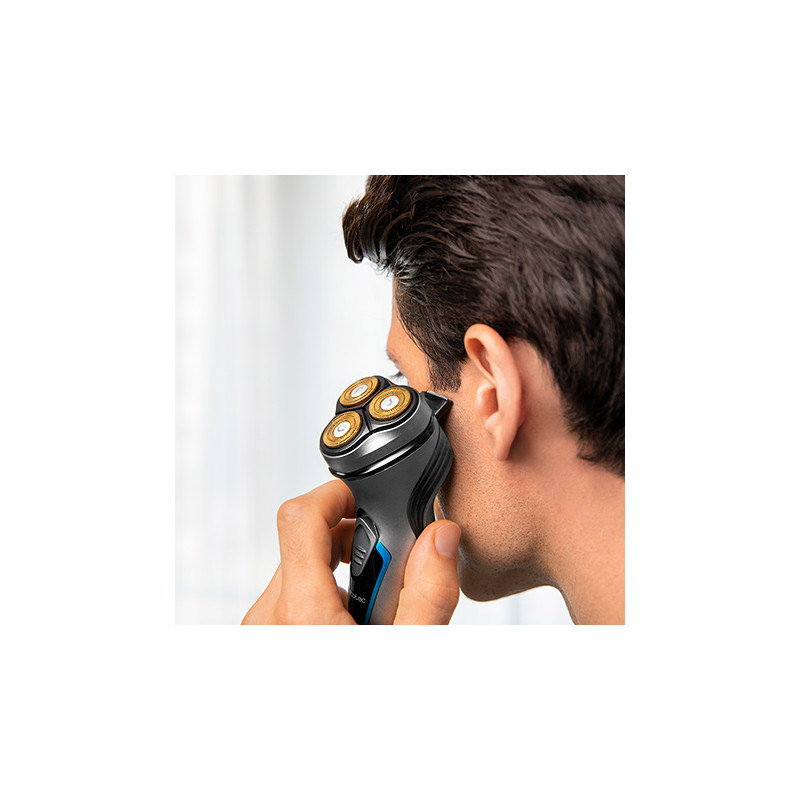 Η ξυριστική μηχανή, έχει τρισδιάστατη κεφαλή ξυρίσματος με προσαρμογή που σφίγγει το δέρμα, προσαρμόζεται τέλεια στο περίγραμμα του προσώπου και παρέχει μέγιστη απαλότητα χωρίς να χρειάζεται να την πιέζετε στο δέρμα. Με μπαταρία λιθίου που επιτρέπει τη χρήση 40 λεπτών χωρίς διακοπή (χωρίς το καλώδιο τροφοδοσίας) και φόρτιση 120 λεπτών. Σχεδιασμένη με γενική τάση που επιτρέπει τη χρήση της οπουδήποτε στον κόσμο.