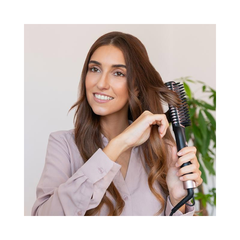 Η ηλεκτρική βούρτσα ισιώματος μαλλιών, από την εταιρία Cecotec, έχει σχεδιαστεί για να ισιώνει τα μαλλιά χωρίς να μειώνει τον όγκο τους, γρήγορα και εύκολα. Τα κεραμικά στοιχεία και η επίστρωση τουρμαλίνης, επιτρέπουν πολύ πιο ομαλή ολίσθηση και αποτρέπουν το σπάσιμο των μαλλιών. Διαθέτει γρήγορη θέρμανση σε μόλις 60 δευτερόλεπτα, μέγιστη θερμοκρασία 180 °C για την προστασία των μαλλιών σας και για εκπληκτικά αποτελέσματα και ενδείξεις LED για τον έλεγχο της διαδικασίας ισιώματος.
