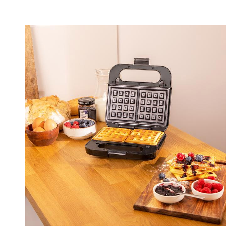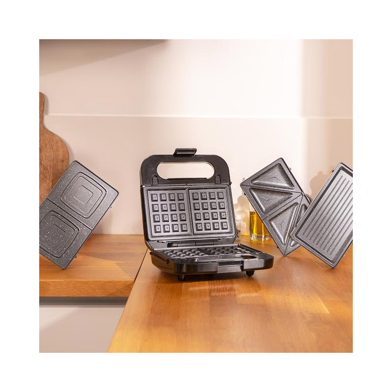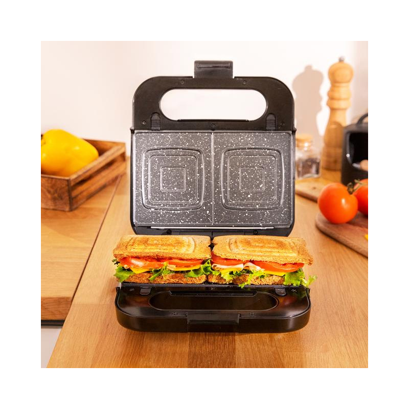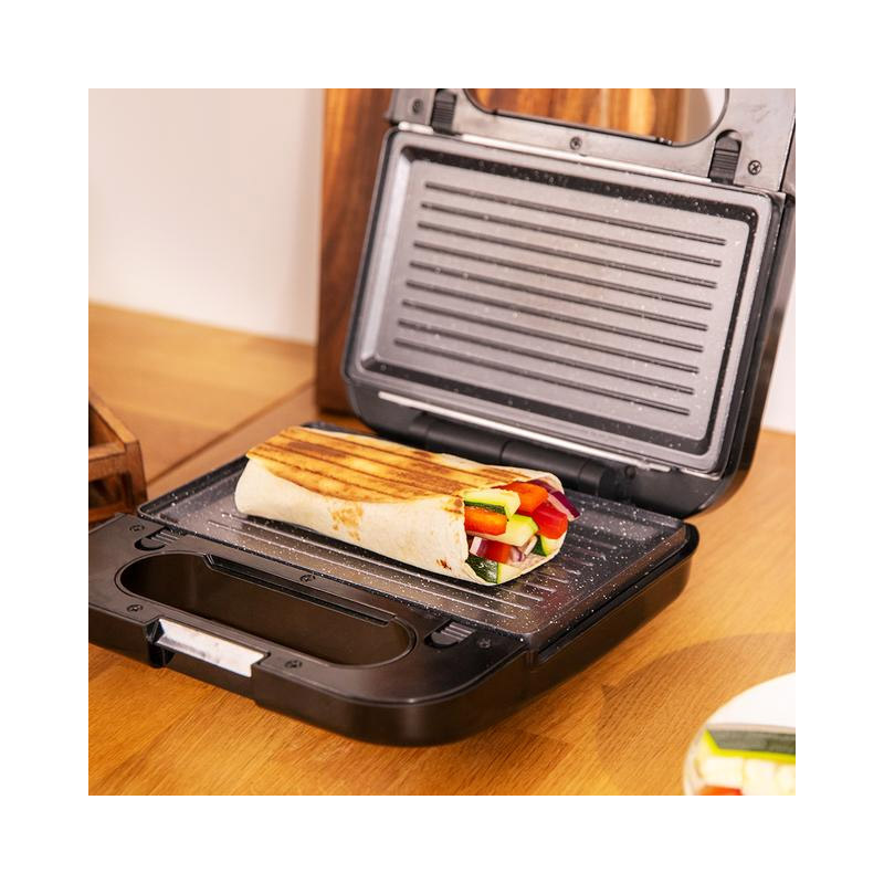 Η τοστιέρα – σαντουιτσιέρα – βαφλιέρα- γκριλιέρα, από την εταιρία Cecotec, χάρη στη δυνατή ισχύ των 1000 W, μπορεί να χρησιμοποιηθεί για τοστ, σάντουιτς, βάφλες, ακόμη και για οποιοδήποτε είδος φαγητού. Διαθέτει 4 αποσπώμενες και εναλλάξιμες αντικολλητικές πλάκες με επίστρωση RockStone, η οποία εξασφαλίζει μέγιστες αντικολλητικές ιδιότητες και εύκολο καθάρισμα.
