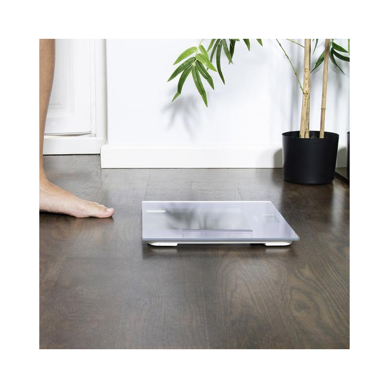 Η ζυγαριά έχει μια μεγάλη ψηφιακή οθόνη LCD με ανεστραμμένα χρώματα και οπίσθιο φωτισμό, για εύκολη ανάγνωση χωρίς να χρειάζεται να σκύψετε για να δείτε τα αποτελέσματα των μετρήσεων. Περιλαμβάνει λειτουργία αυτόματης ενεργοποίησης και απενεργοποίησης, έτσι ώστε η χρήση της να είναι πολύ πιο άνετη. Έτσι εξοικονομείται η μπαταρία και παρατείνεται η διάρκεια ζωής της. Επίσης είναι εξοπλισμένη με 4 πόδια θερμοπλαστικής πολυουρεθάνης, που διευκολύνουν την πρόσφυση στο έδαφος και παρέχουν μεγάλη ασφάλεια.
