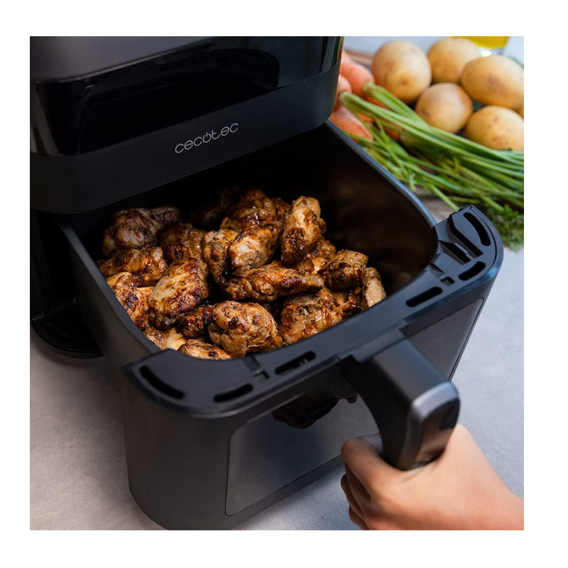 Η φριτέζα αέρος, από την εταιρία Cecotec, διαθέτει τεχνολογία PerfectCook, ένα σύστημα κυκλοφορίας ζεστού αέρα που κατανέμει ομοιόμορφα τη θερμοκρασία σε όλο το εσωτερικό του κάδου και βγαίνει από τις οπές που βρίσκονται στο πίσω μέρος. Χάρη σε αυτή την τεχνολογία, το αποτέλεσμα μαγειρέματος είναι καλύτερο και πιο αποτελεσματικό, κάνοντας το φαγητό τρυφερό εσωτερικά και τραγανό εξωτερικά.