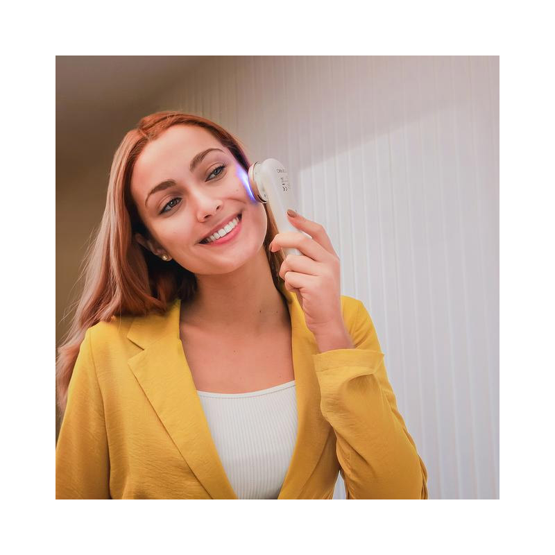 Η συσκευή, έχει λειτουργία μασάζ με κόκκινο και μπλε φως, η οποία αυξάνει την κυτταρική ζωτικότητα του δέρματός σας, αναγεννά το κολλαγόνο και βελτιώνει την ελαστικότητά του, επιτυγχάνοντας αντιοξειδωτική και αντιγηραντική δράση. Τα 5 επίπεδα μικρο-ρευμάτων EMS του μασάζ σας επιτρέπουν να βελτιώσετε τις ρυτίδες και να επιτύχετε λεία επιδερμίδα.