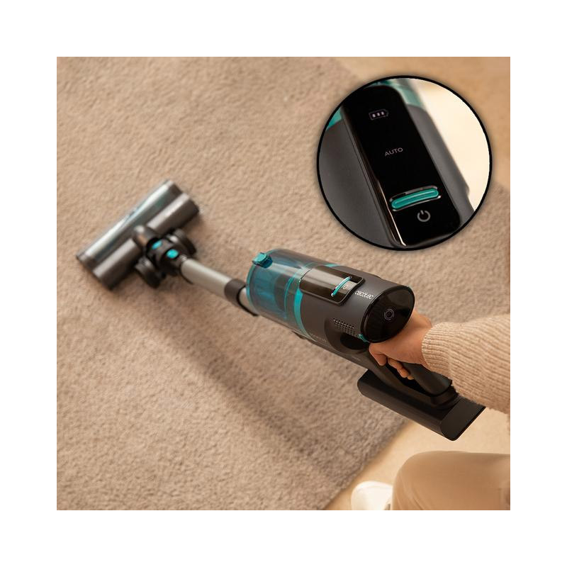 - Αυτόματη λειτουργία: διαχειρίζεται την ισχύ ανάλογα με τη βρωμιά και την επιφάνεια
