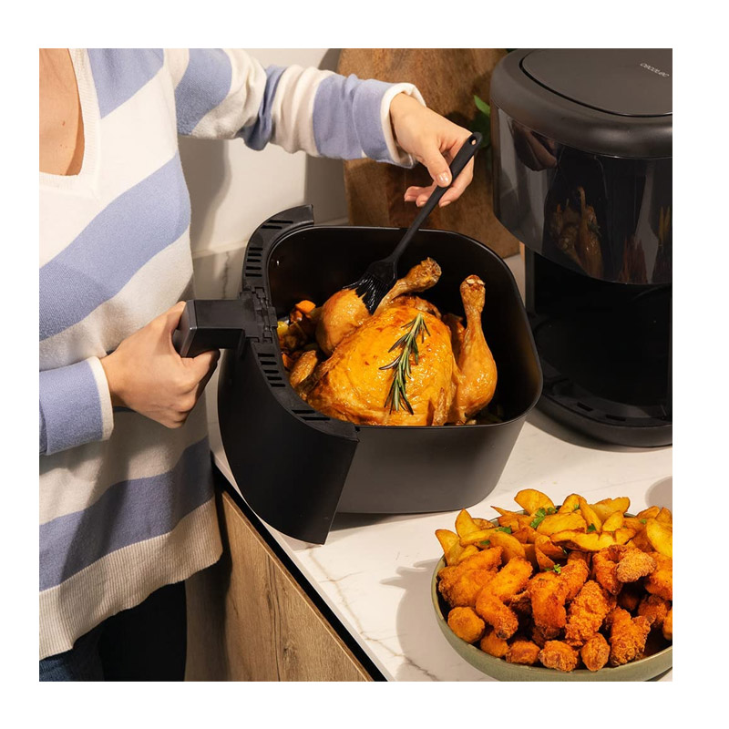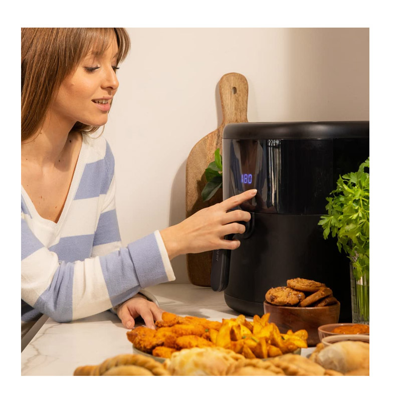 Η ψηφιακή φριτέζα αέρος, από την εταιρία Cecotec, σας επιτρέπει το μαγείρεμα με μία μόνο κουταλιά της σούπας λάδι, επιτυγχάνοντας πιο υγιεινά αποτελέσματα. Με δυνατή ισχύ 1700 W και αφαιρούμενο κάδο 6 Lt για μαγείρεμα μεγάλων ποσοτήτων φαγητού. Διαθέτει 12 προκαθορισμένες λειτουργίες που ρυθμίζουν τον χρόνο και τη θερμοκρασία που απαιτείται για το μαγείρεμα διαφορετικών ειδών φαγητού, θερμοστάτη για τη ρύθμιση της θερμοκρασίας από 80 έως 200 ° C, ρυθμιζόμενο χρόνο από 0 έως 60 λεπτά και πίνακα ελέγχου αφής πολλαπλών λειτουργιών για τον έλεγχο της λειτουργίας.