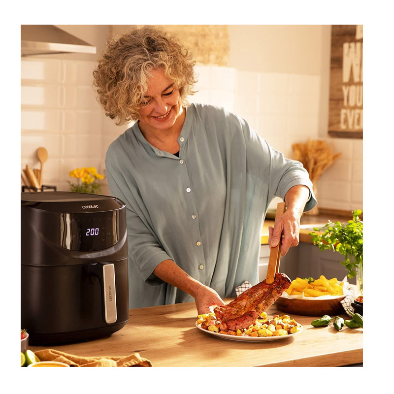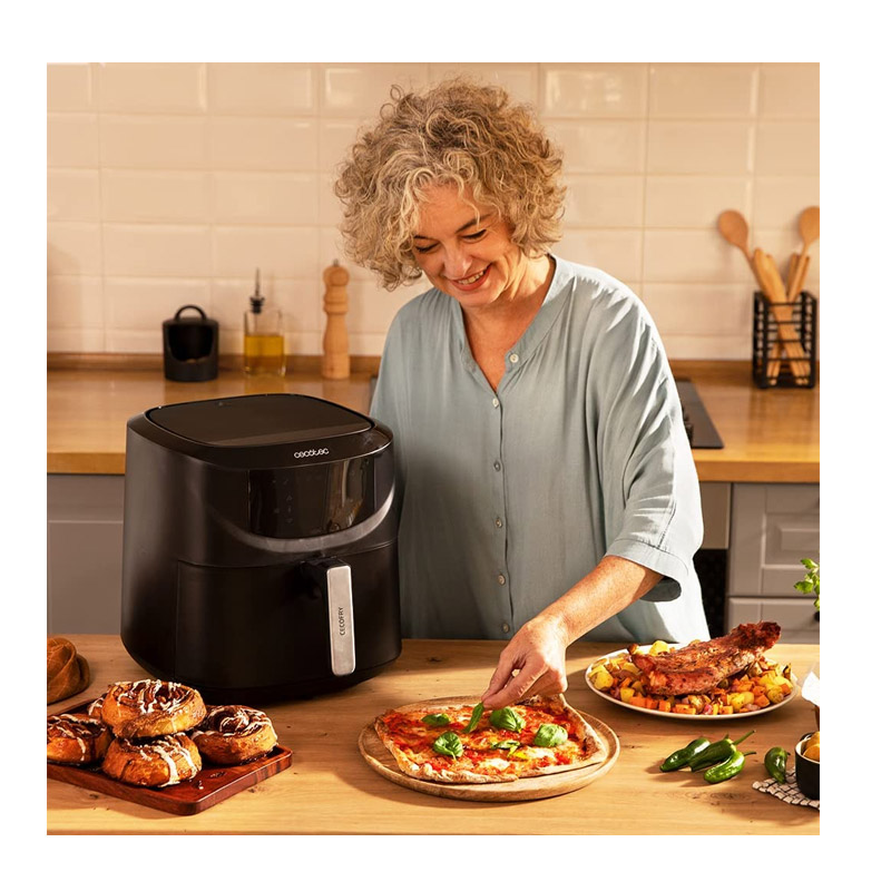 Η ψηφιακή φριτέζα αέρος, από την εταιρία Cecotec, μαγειρεύει με μία μόνο κουταλιά της σούπας λάδι. Εξαιρετικά αποτελέσματα σε όλες τις συνταγές χάρη στην τεχνολογία ζεστού αέρα PerfectCook που κυκλοφορεί μέσα και εξέρχεται από τις πίσω τρύπες. Μοντέρνος και συμπαγής σχεδιασμός με πολυλειτουργικό πίνακα ελέγχου αφής για τον έλεγχο της λειτουργίας και 8 προκαθορισμένες λειτουργίες που ρυθμίζουν τον χρόνο και τη θερμοκρασία που απαιτείται για το μαγείρεμα διαφορετικών ειδών φαγητού.