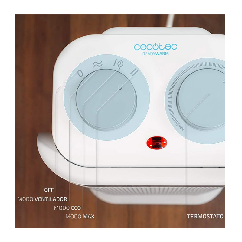 Η κεραμική θερμάστρα πύργος, από την εταιρία Cecotec, διαθέτει ρυθμιζόμενο θερμοστάτη για να επιλέξετε μεταξύ 2 επιπέδων ισχύος, για βελτιστοποίηση της κατανάλωσης ενέργειας. Μπορείτε να επιλέξετε τη λειτουργία Eco (1000 W θερμότητας), τη λειτουργία Turbo (2000 W θερμότητας) ή τη λειτουργία ψύξης με τον ανεμιστήρα. Χάρη σε αυτή τη ρύθμιση, η κατανάλωση ενέργειας βελτιστοποιείται.