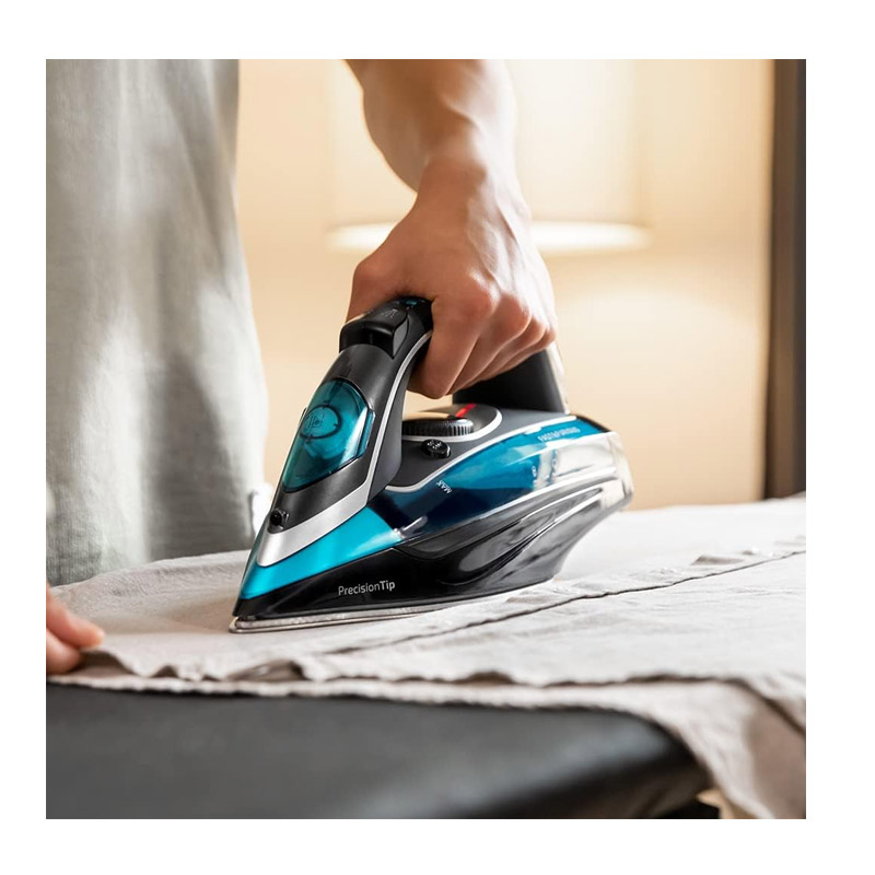 Με διπλή υπερολισθηρή σόλα Turbo Anodized Pro από ανοδιωμένο αλουμίνιο, για εξοικονόμηση χρόνου κατά τη διάρκεια των συνεδριών σιδερώματος. Το ανοδιωμένο αλουμίνιο είναι το πιο ανθεκτικό υλικό στην αγορά για σιδερένιες σόλες. Εξπλισμένο με αισθητήρα αφής για ενεργοποίηση του ατμού μόνο κατά το σιδέρωμα. Παράγει ατμό χωρίς να χρειάζεται να πατήσετε κανένα κουμπί, απλά αγγίζοντας τη λαβή του. Σύστημα ασφαλείας Smart Auto OFF κατά της υπερθέρμανσης που απενεργοποιεί αυτόματα το σίδερο εάν δεν χρησιμοποιείται.