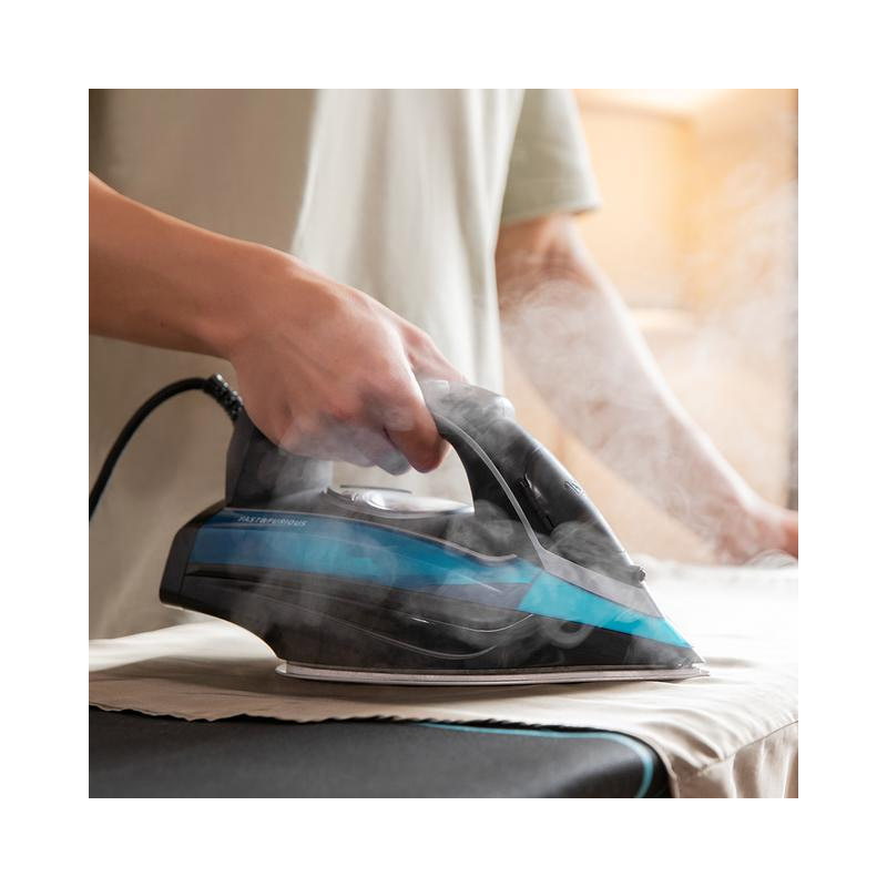 Με διπλή υπερολισθηρή σόλα Turbo Anodized Pro από ανοδιωμένο αλουμίνιο, για εξοικονόμηση χρόνου κατά τη διάρκεια των συνεδριών σιδερώματος. Το ανοδιωμένο αλουμίνιο είναι το πιο ανθεκτικό υλικό στην αγορά για σιδερένιες σόλες. Εξπλισμένο με αισθητήρα αφής για ενεργοποίηση του ατμού μόνο κατά το σιδέρωμα. Παράγει ατμό χωρίς να χρειάζεται να πατήσετε κανένα κουμπί, απλά αγγίζοντας τη λαβή του. Οθόνη LCD για άνετο έλεγχο των διαφορετικών θερμοκρασιών του. Σύστημα ασφαλείας Smart Auto OFF κατά της υπερθέρμανσης που απενεργοποιεί αυτόματα το σίδερο εάν δεν χρησιμοποιείται.
