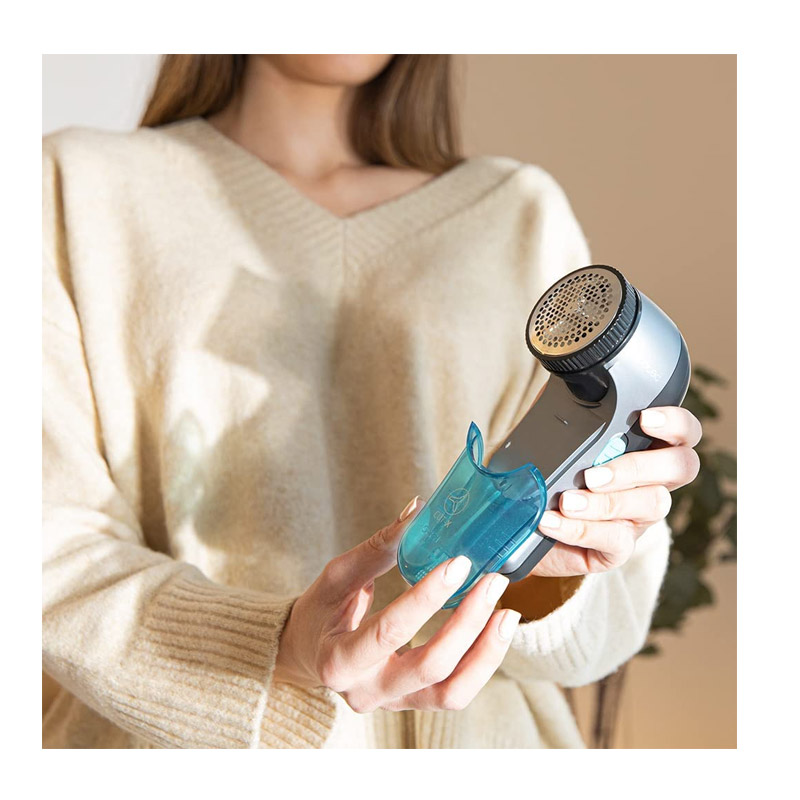 Ο αποχνουδωτής διαθέτει ένα ποιοτικό μεταλλικό πλέγμα που αποτελείται από τρύπες 3 διαφορετικών μεγεθών, για να απομακρύνει όλα τα χνούδια και να φροντίζει τα ρούχα σας με λεπτότητα. Με εργονομικό και ελαφρύ σχεδιασμό, είναι πολύ εύκολος στη χρήση. Διαθέτει αποσπώμενο δοχείο για τη συλλογής χνουδιών χωρητικότητας 45 ml, το οποίο καθαρίζεται εύκολα.