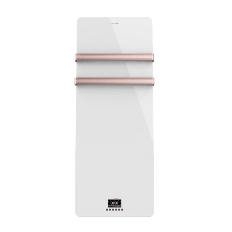 Η ηλεκτρική πετσετοκρεμάστρα μπάνιου, από την εταιρία Cecotec, είναι κατασκευασμένη από γυαλί και διαθέτει υπέρυθρη πλάκα θέρμανσης με 2 κρεμάστρες από ανοξείδωτο ατσάλι για το στέγνωμα των πετσετών. Έχει ισχύ 850 W και θερμαίνει αποτελεσματικά μπάνια έως 10 m².
