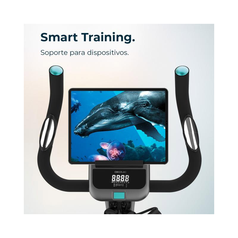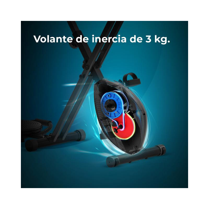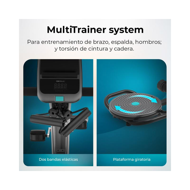 Το ποδήλατο γυμναστικής, από την εταιρία Cecotec, διαθέτει σύστημα αναδίπλωσης για την αποθήκευσή του σε ελάχιστο χώρο. Με 8 επίπεδα μεταβλητής αντίστασης για προσομοίωση πεδιάδων και βουνών και σφόνδυλο 3 Kg που παρέχει μετάδοση ρευστού ιμάντα. Ενσωματώνει δύο ελαστικές λωρίδες για εκγύμναση χεριών, πλάτης και ώμων και περιστρεφόμενη πλατφόρμα περιστροφής μέσης και ισχίου, για τεντώματα, κοιλιακούς και βελτίωση της ισορροπίας.