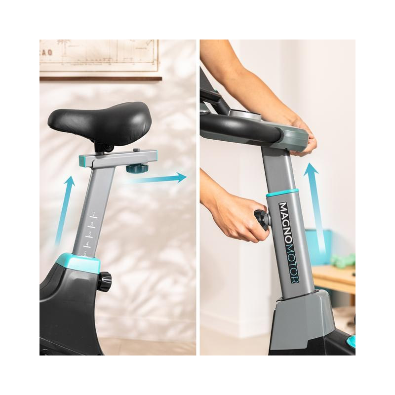 Το ποδήλατο γυμναστικής, από την εταιρία Cecotec, διαθέτει σφόνδυλο 10 Kg του επιτυγχάνει μια ολοκληρωμένη και απόλυτα ρευστή προπόνηση. Το σύστημα μαγνητικής αντίστασης που χρησιμοποιεί μαγνήτες, παρέχουν ρευστή και φυσική αίσθηση πεντάλ, ελαχιστοποιώντας τη συντήρηση. Με 32 επίπεδα ρυθμιζόμενης αντίστασης και οθόνη LCD που δείχνει χρόνο, θερμίδες, απόσταση, ταχύτητα, παλμό και στροφές ανά λεπτό.