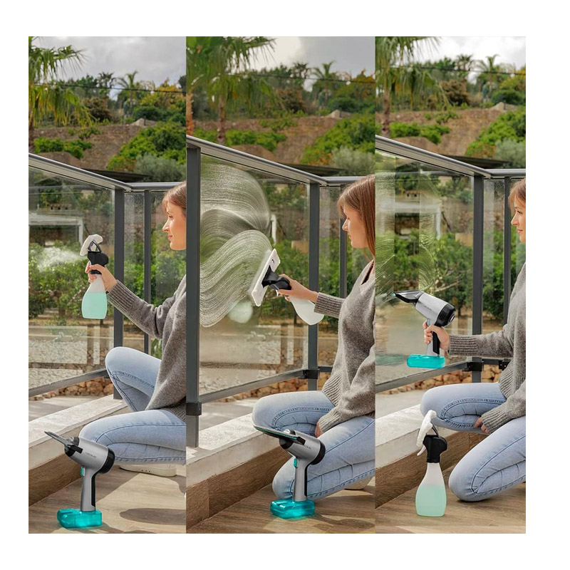 Ο καθαριστής τζαμιών, από την εταιρία Cecotec, συνδυάζει 3 λειτουργίες: ψεκασμό, καθάρισμα και αναρρόφηση. Με επαναφορτιζόμενη μπαταρία 3.7 V αυτονομίας 30 λεπτών και δεξαμενή συλλογής βρώμικου νερού 50 ml. Περιλαμβάνει ακροφύσιο ευέλικτου μεγέθους 220 mm για όλους τους τύπους γυαλιού ή καθρεφτών.