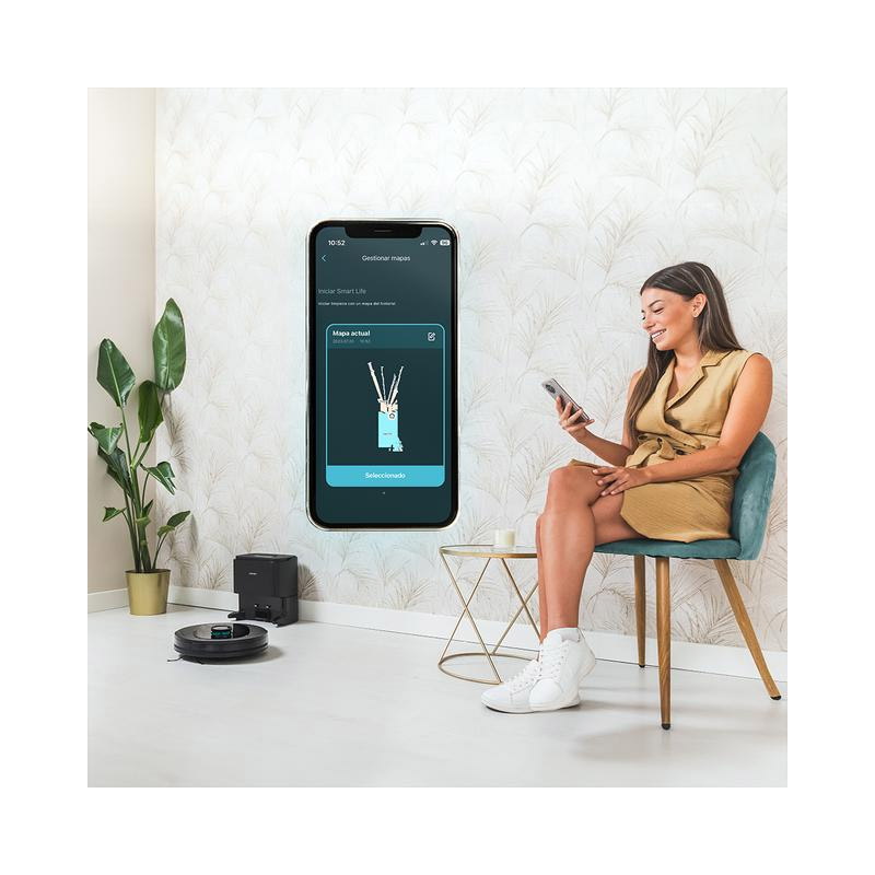 Διαθέτει κεντρική βούρτσα πολλαπλών λειτουργιών και δοχείο ανάμειξης σκόνης και νερού για πλήρη καθαρισμό. Επιτρέπει τον έλεγχο μέσω της εφαρμογής για κινητά και μέσω του εικονικού βοηθού Alexa. Με μπαταρία 2600 mAh που φτάνει σε εμβέλεια έως και 120 λεπτά. Λειτουργεί μέσω της τεχνολογίας Total Surface, για να καθαρίζει αποτελεσματικά την επιφάνεια του σπιτιού σας. Η σκούπα επιστρέφει αυτόματα στη βάση φόρτισης ακολουθώντας τον πιο γρήγορο τρόπο όταν τελειώσει η μπαταρία, φορτίζει την μπαταρία της και συνεχίζει τη διαδικασία καθαρισμού μέχρι να το ολοκληρώσει.