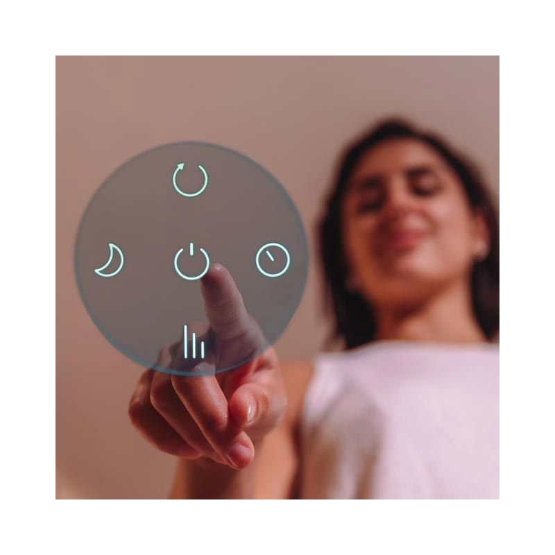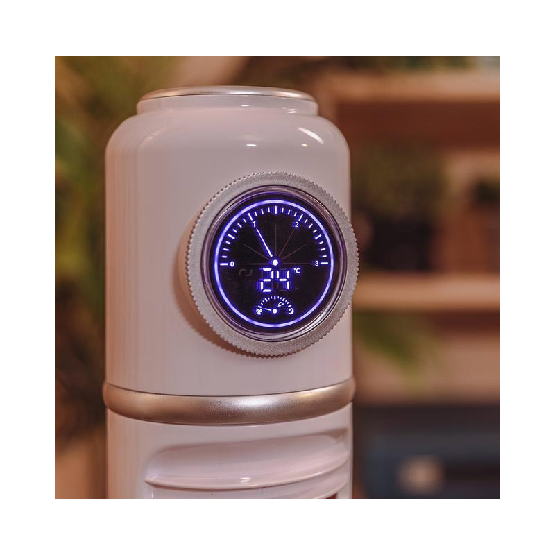 Ο ανεμιστήρας, έχει οθόνη LED για να ελέγχετε τις επιλεγμένες ρυθμίσεις καθώς και τη θερμοκρασία δωματίου. Περιλαμβάνει τηλεχειριστήριο για τον έλεγχο όλων των λειτουργιών του από απόσταση.