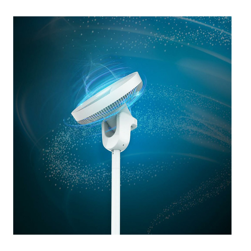 Μπαταρία ιόντων λιθίου 2600 mAh, που επιτρέπει στον ανεμιστήρα μεγάλη αυτονομία χωρίς να χρειάζεται καλώδια, γεγονός που τον καθιστά εντελώς φορητό. Οθόνη LED που δείχνει το επίπεδο μπαταρίας, την ταχύτητα, το χρονόμετρο και τον βαθμό ταλάντωσης που έχει επιλεγεί. Περιλαμβάνει φως στο πίσω μέρος, που επιτρέπει το φωτισμό του δωματίου στο οποίο βρίσκεται, το οποίο λειτουργεί ανεξάρτητα.