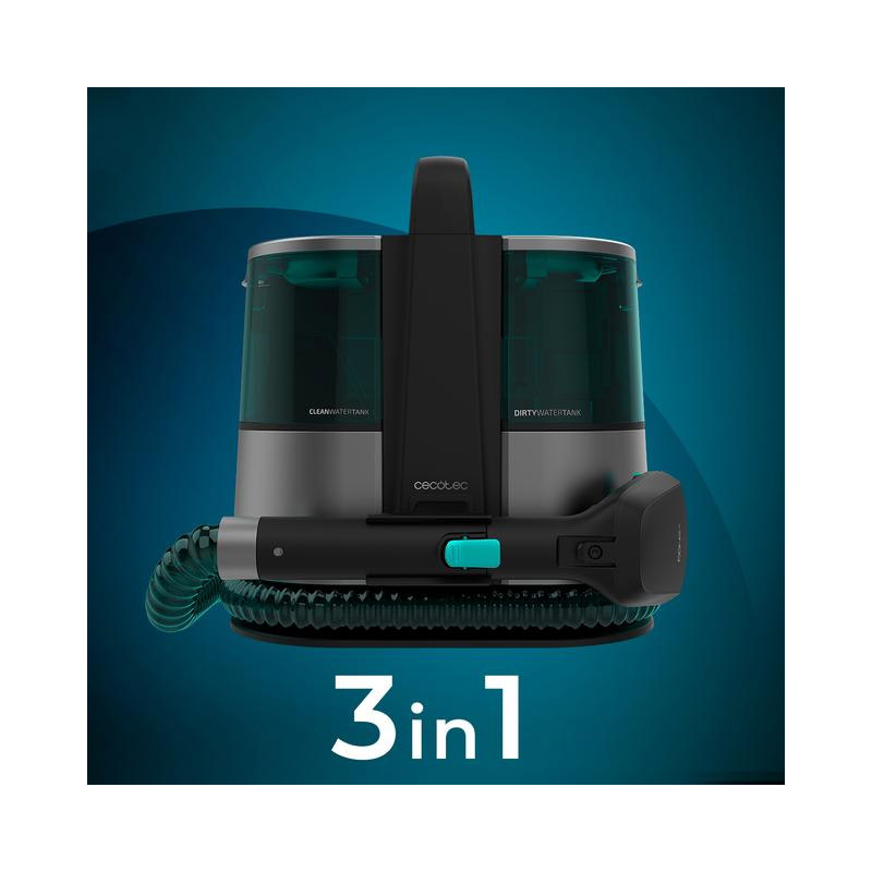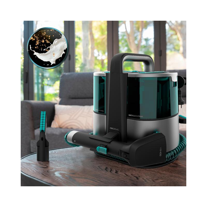 Η ηλεκτρική σκούπα, από την εταιρία Cecotec, είναι κατάλληλη για χαλιά και ταπετσαρίες. Ψεκάζει, καθαρίζει και σκουπίζει γρήγορα και αποτελεσματικά. Διαθέτει ισχύ 400 W και 2 δεξαμενές νερού (μια δεξαμενή για καθαρό νερό και μια για βρώμικο νερό). Είναι συμβατή με υγρό καθαρισμού χαμηλού αφρού ενώ η ακτίνα δράσης των 5 m επιτρέπει πιο άνετο καθάρισμα.