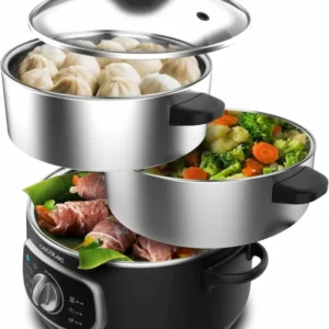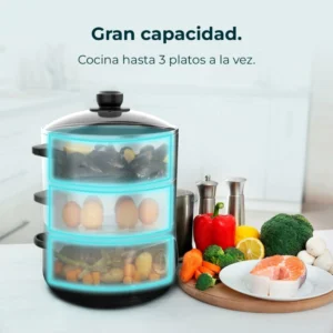 Ο Vapovita SteelPot είναι ο ιδανικός ηλεκτρικός ατμομάγειρας για υγιεινή και αποδοτική μαγειρική. Με ισχύ 1300 W, 3 ανθεκτικά δοχεία από ανοξείδωτο ατσάλι και συνολική χωρητικότητα 10 λίτρων, σας επιτρέπει να ετοιμάζετε έως και 3 διαφορετικά πιάτα ταυτόχρονα, διατηρώντας τη γεύση και τα θρεπτικά συστατικά των τροφών.