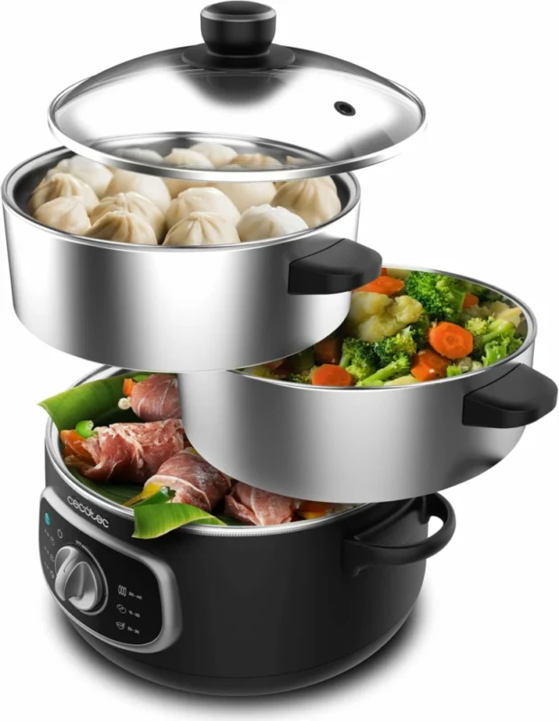 Ηλεκτρικός Ατμομάγειρας 1300W με 3 Δοχεία από Ανοξείδωτο Ατσάλι 10lt Vapovita SteelPot CEC-100072 Cecotec