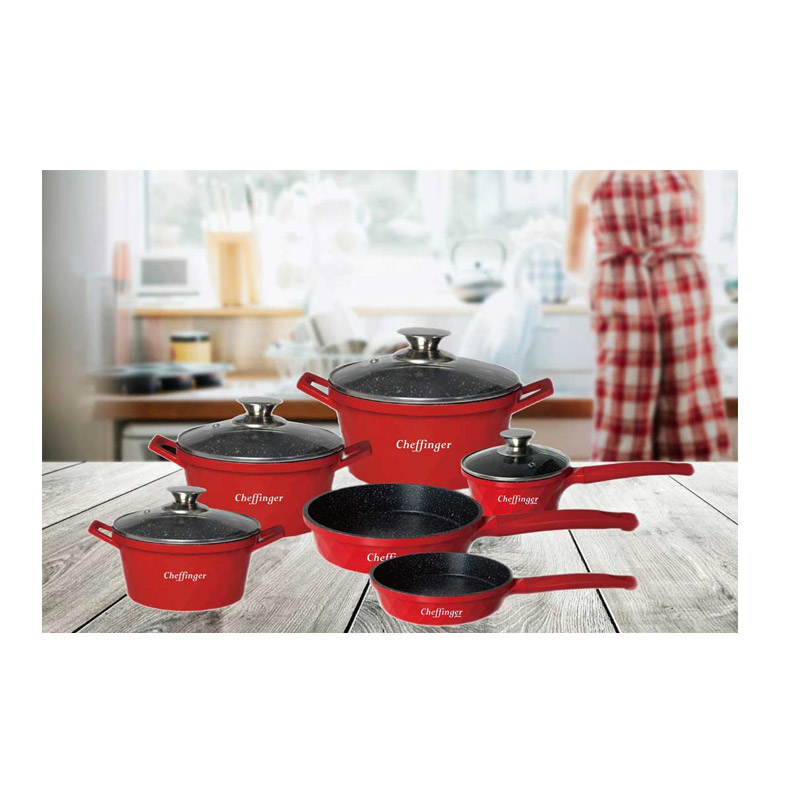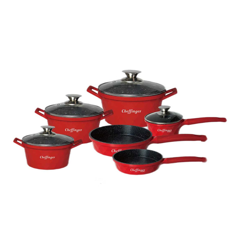 Σετ Μαγειρικά Σκεύη από Αλουμίνιο με Αντικολλητική Μαρμάρινη Επίστρωση 10 τμχ Χρώματος Κόκκινο Cheffinger CF-DIAC12-RED