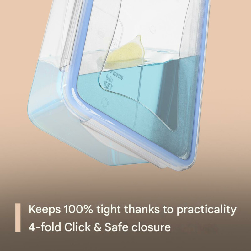 Κατασκευασμένα από πλαστικό χωρίς BPA, προσφέρουν ασφάλεια και υγιεινή στη φύλαξη των τροφίμων. Χάρη στο σύστημα Click & Safe, εξασφαλίζεται αεροστεγές κλείσιμο που διατηρεί τη φρεσκάδα και αποτρέπει διαρροές. Είναι στοιβαζόμενα, για να εξοικονομούν χώρο, ενώ καθαρίζονται εύκολα και πλένονται στο πλυντήριο πιάτων.