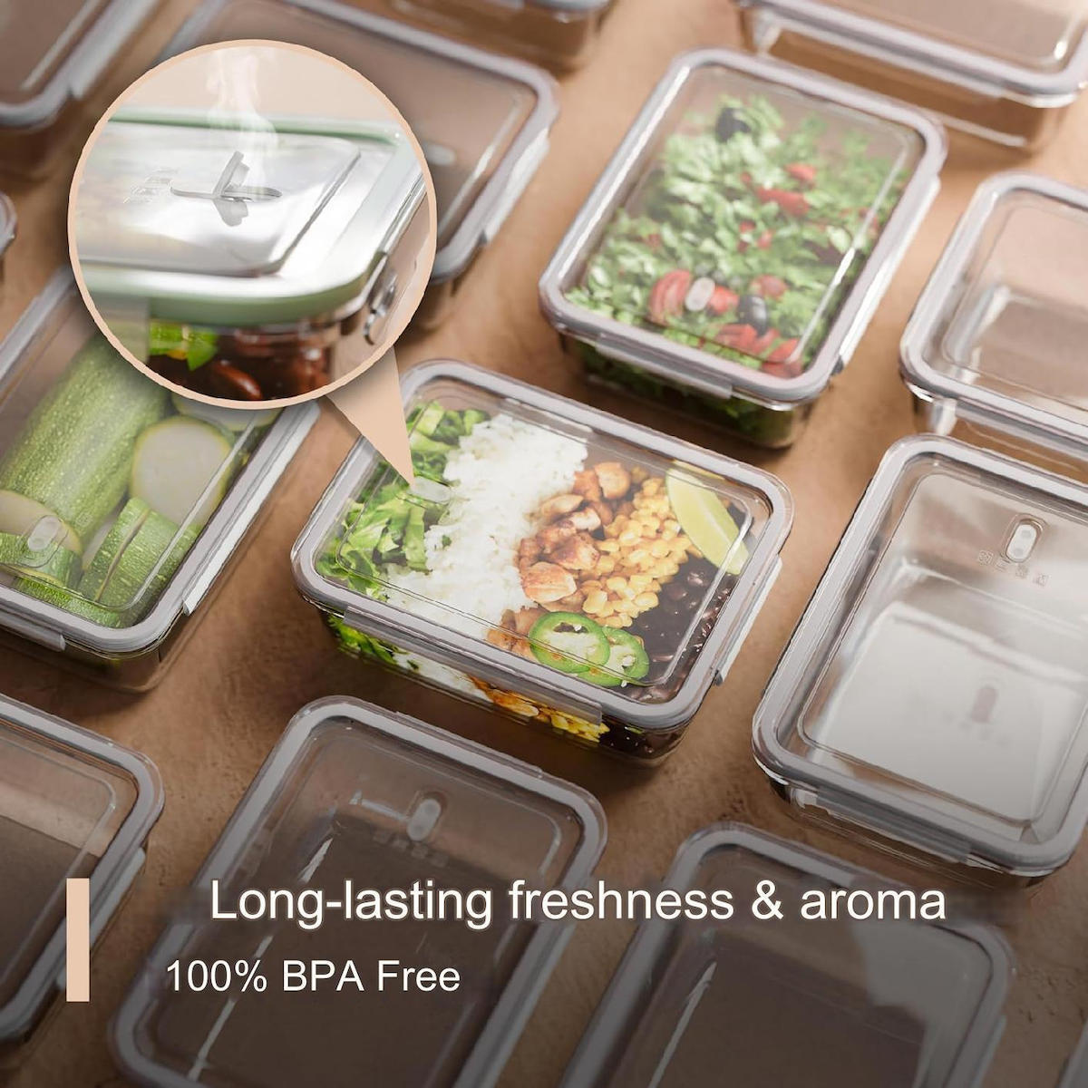 Διαθέτουν αεροστεγές κλείσιμο που διατηρεί τη φρεσκάδα και το άρωμα των τροφίμων για περισσότερο χρόνο. Είναι στοιβαζόμενα για εξοικονόμηση χώρου και ανθεκτικά σε υψηλές και χαμηλές θερμοκρασίες, καλύπτοντας κάθε ανάγκη αποθήκευσης και προετοιμασίας.