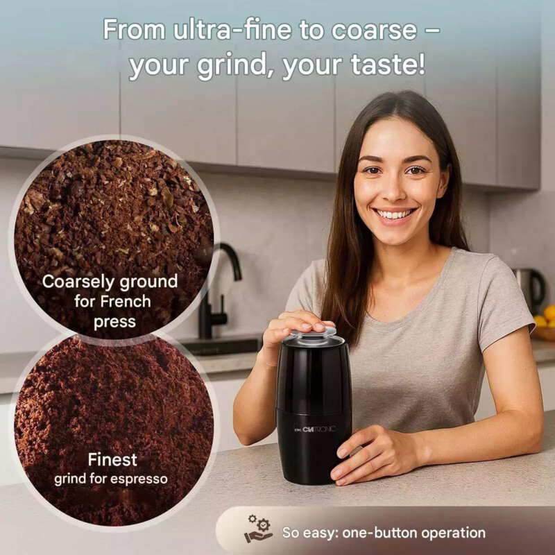 Ηλεκτρικός Μύλος Καφέ 150W – Χωρητικότητα 60gr Μαύρο KSW3806 Clatronic