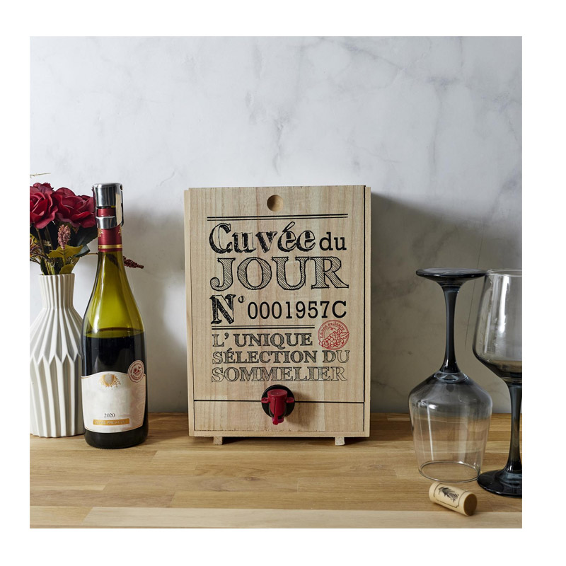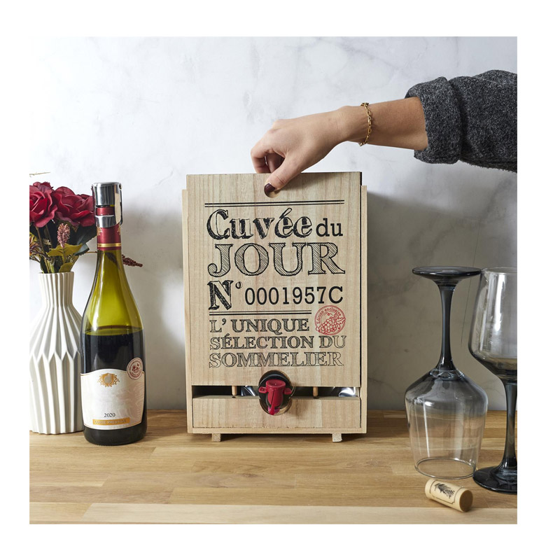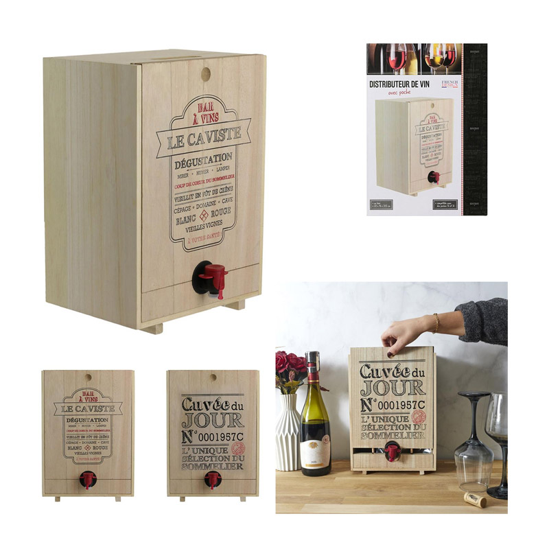 Ο διανομέας, από την εταιρία Cook Concept, είναι κατασκευασμένος από ξύλο (Paulownia) και είναι κατάλληλος για ασκό κρασιού χωρητικότητας 3 Lt και 5 Lt. Η αλλαγή του ασκού θα είναι εύκολη χάρη στο συρόμενο πάνελ στο μπροστινό μέρος.
