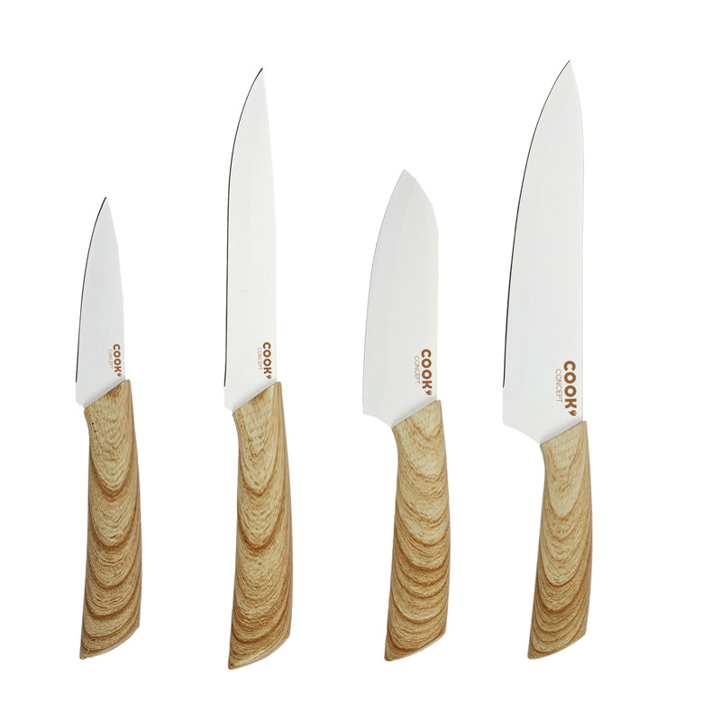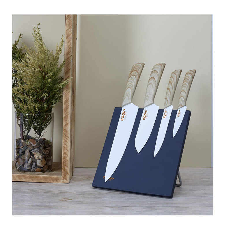 Το σετ, από την εταιρία Cook Concept, αποτελείται από μαχαίρια με λεπίδες από ανοξείδωτο ατσάλι, για να διατηρούν την κόψη τους για πολύ καιρό. Τα μαχαίρια έχουν αντιολισθητικές λαβές για ακρίβεια στο κόψιμο και μέγιστη εκμετάλλευση όλου του μήκους της λεπίδας, ιδιαίτερο στιλ και είναι ιδανικά να κόψετε, να ψιλοκόψετε ή να κόψετε σε φέτες τα φρούτα, τα λαχανικά και τα κρέατά σας.