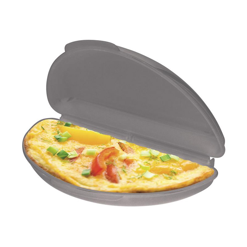 Με το σκεύος από την εταιρεία Cook Concept μπορείτε να ετοιμάσετε ομελέτες εύκολα και γρήγορα στον φούρνο μικροκυμάτων σας. Είναι κατασκευασμένο από ασφαλές και ανθεκτικό πλαστικό, κατάλληλο για τρόφιμα και ειδικά σχεδιασμένο για μαγείρεμα στο φούρνο μικροκυμάτων. Καθαρίζεται εύκολα και είναι η ιδανική επιλογή για αρχάριους στο μαγείρεμα.