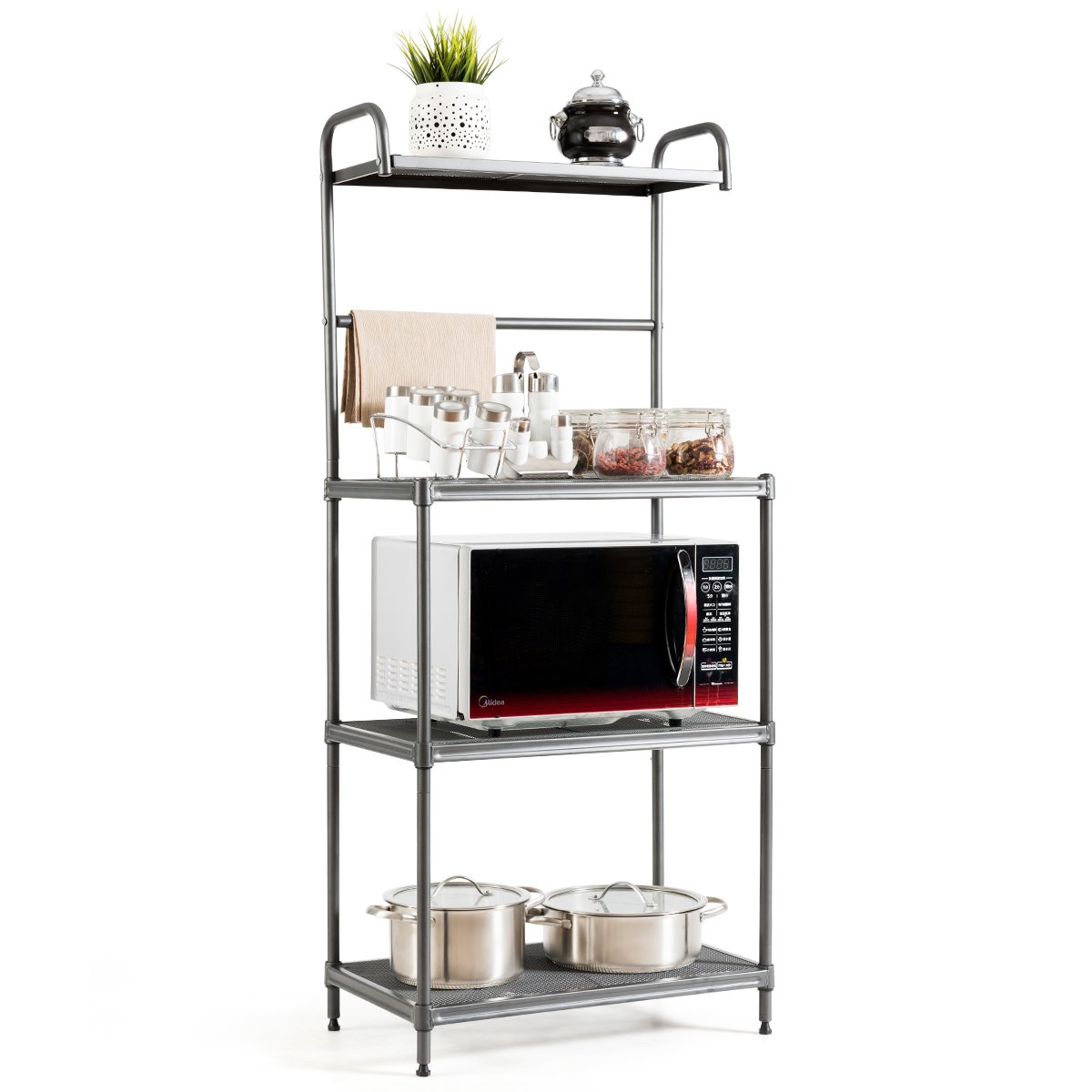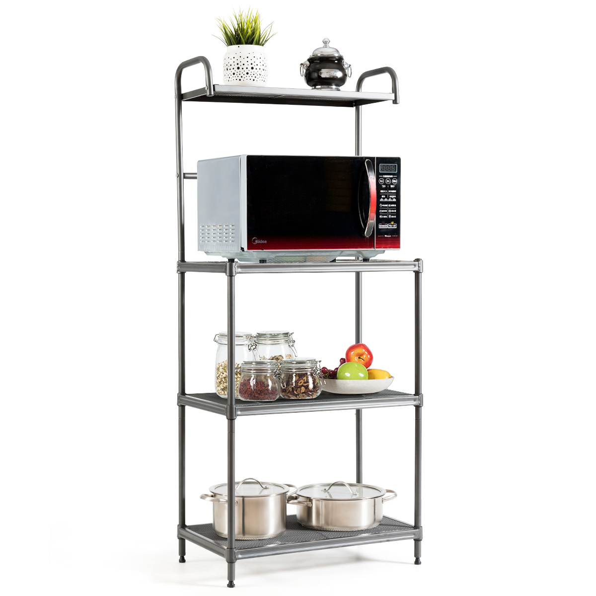 • Το 4-επίπεδο ράφι προσφέρει χώρο για την αποθήκευση του φούρνου μικροκυμάτων, πιάτων, συσκευών κουζίνας κ.λπ.