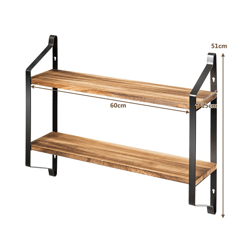 Επιτοίχια Μεταλλική Ραφιέρα με 2 Ξύλινα Ράφια 60 x 15 x 51 cm Costway HW64214