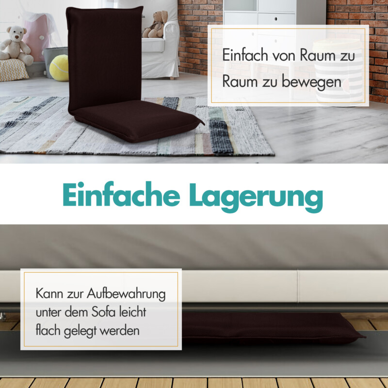 Costway Καθιστικό Δαπέδου με 6-θέσια Ρυθμιζόμενη Πλάτη για Διαλογισμό Καφέ HW65605CF