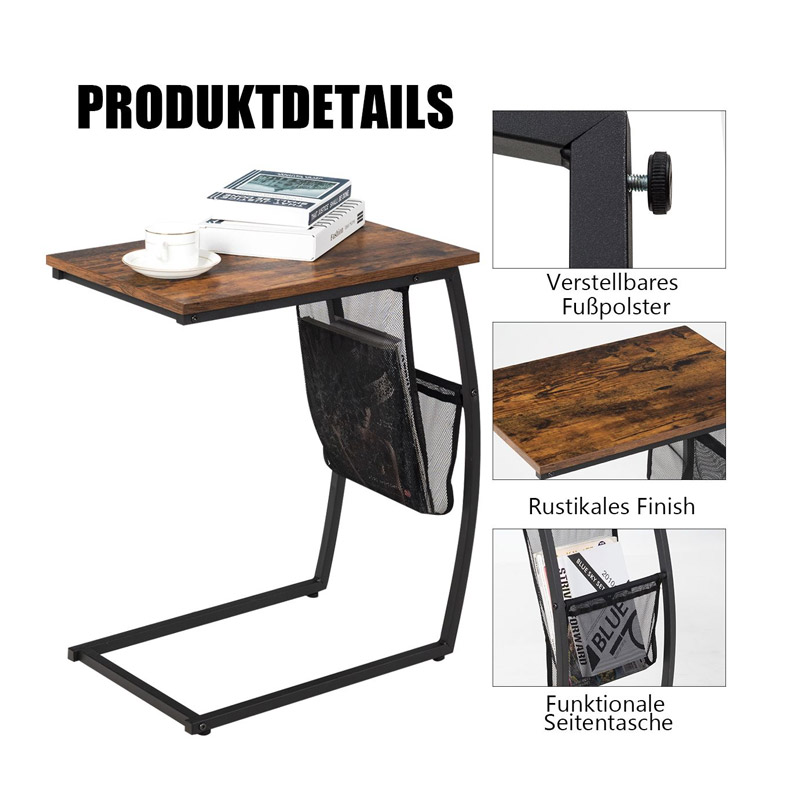 Το βοηθητικό τραπεζάκι, από την εταιρία Costway, με το μοναδικό σχέδιο σε σχήμα C μπορεί να χρησιμοποιήσει αποτελεσματικά το χώρο κάτω από τον καναπέ ή το κρεβάτι, καθιστώντας το βέλτιστο για μικρά δωμάτια. Με ύψος 63 cm, είναι ψηλότερο από ένα τραπεζάκι σαλονιού, αλλά χαμηλότερο από ένα κανονικό τραπέζι, έτσι ώστε να έχετε πάντα τα πράγματα πάνω του σε κοντινή απόσταση όταν κάθεστε.
