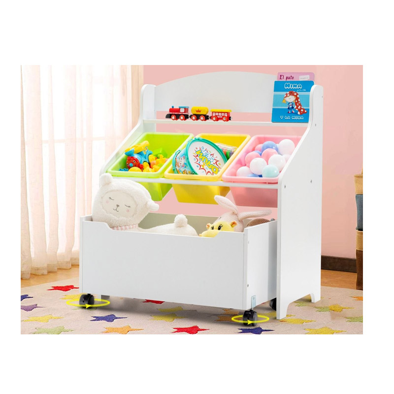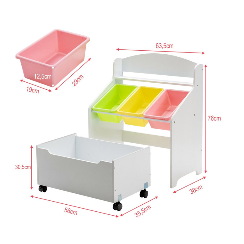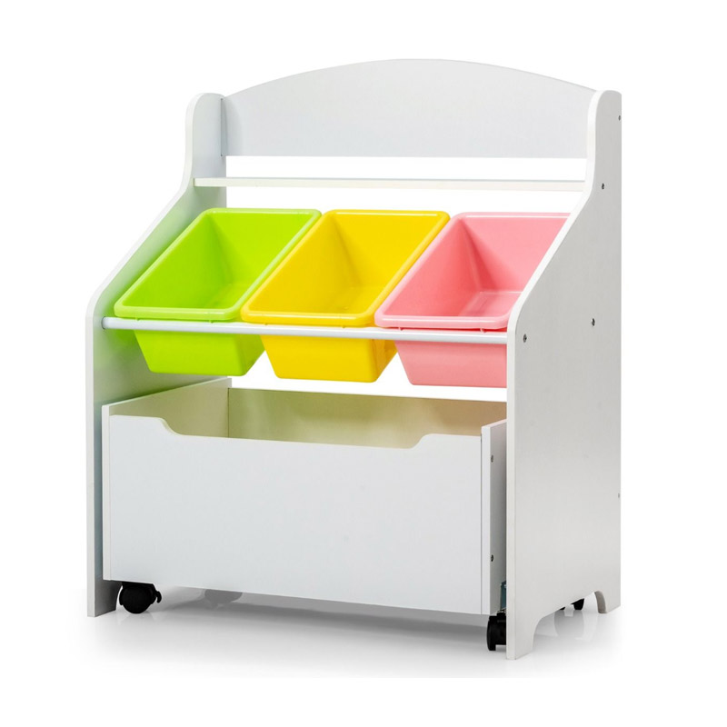 Η παιδική ραφιέρα, από την εταιρία Costway, είναι κατασκευασμένη από φιλικό προς το περιβάλλον MDF για μακροχρόνια χρήση. Διαθέτει ένα μεγάλο συρτάρι με ρόδες για εύκολη μετακίνηση ιδανικό για παιχνίδια ή βιβλία και 3 πλαστικά και αφαιρούμενα καλάθια για την αποθήκευση μικροαντικειμένων.
