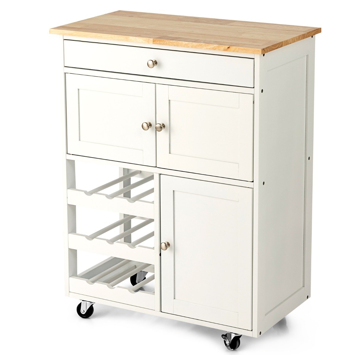 Costway Πολυλειτουργικό Ξύλινο Καρότσι Κουζίνας με Μεγάλο Χώρο Αποθήκευσης και Ρόδες HW67062WH