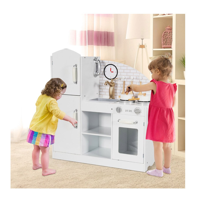 Με τη ζωηρή του εμφάνιση και τους προσομοιωμένους ήχους του διακόπτη της κουζίνας και της βρύσης, προσφέρει στο μικρό σας μια ρεαλιστική εμπειρία κουζίνας. Και άλλες δυνατότητες αναπαραγωγής, όπως τηλέφωνο, ρολόι, φούρνος και νεροχύτης προσθέτουν πολύ περισσότερη διασκέδαση και διεγείρουν τη φαντασία των παιδιών.