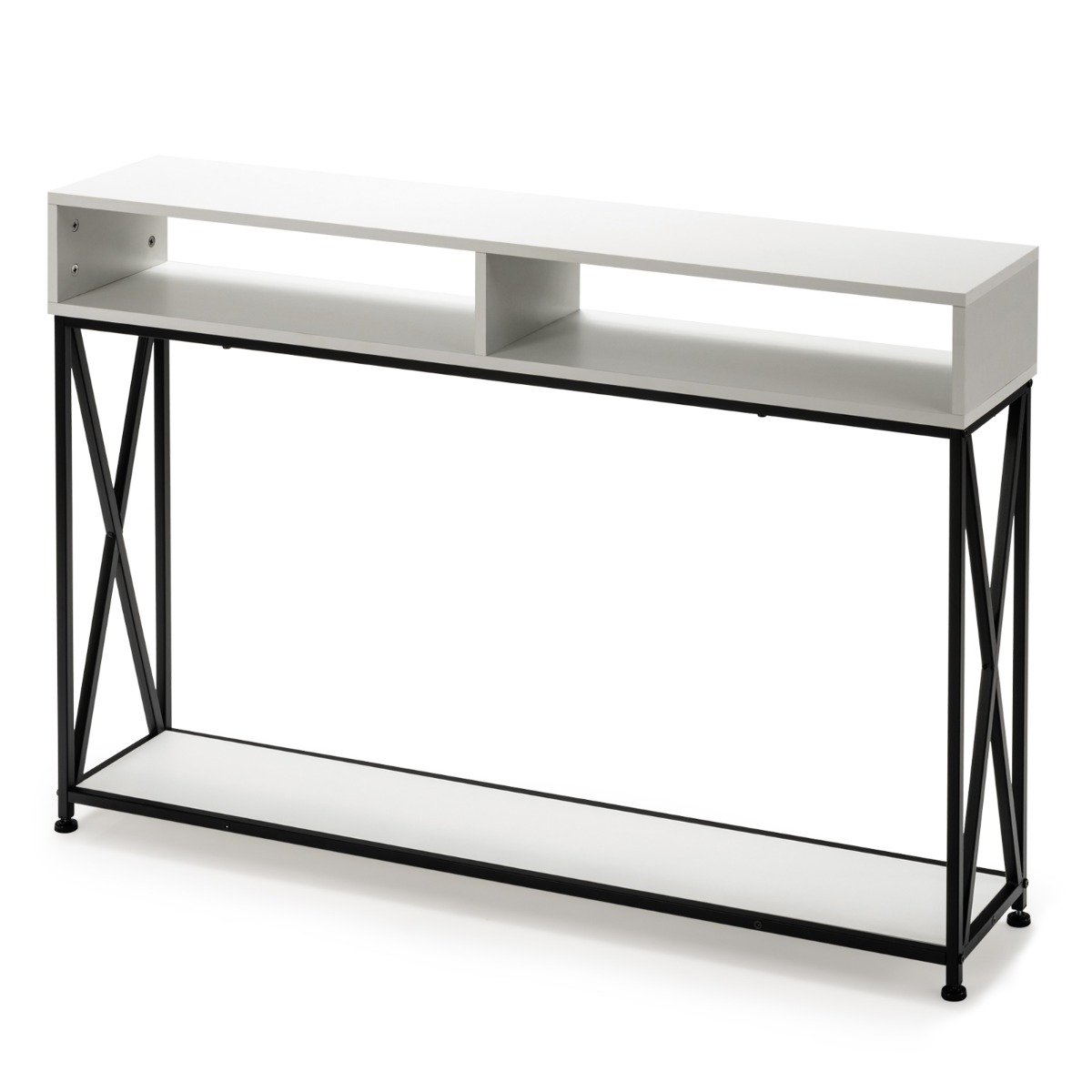 Costway Κομψό Κονσόλα Τραπέζι με Ανοιχτά Ράφια και Μεταλλικό Πλαίσιο για Σταθερότητα HV10016WH