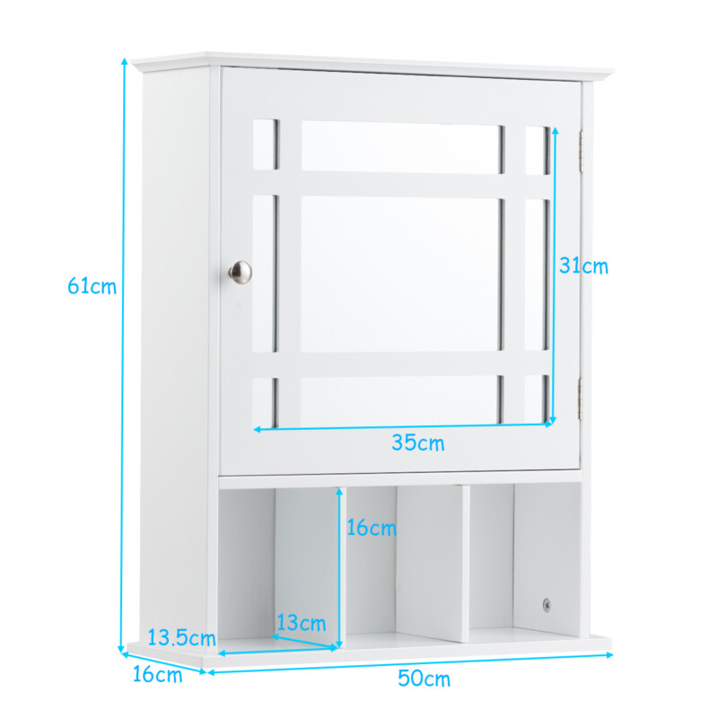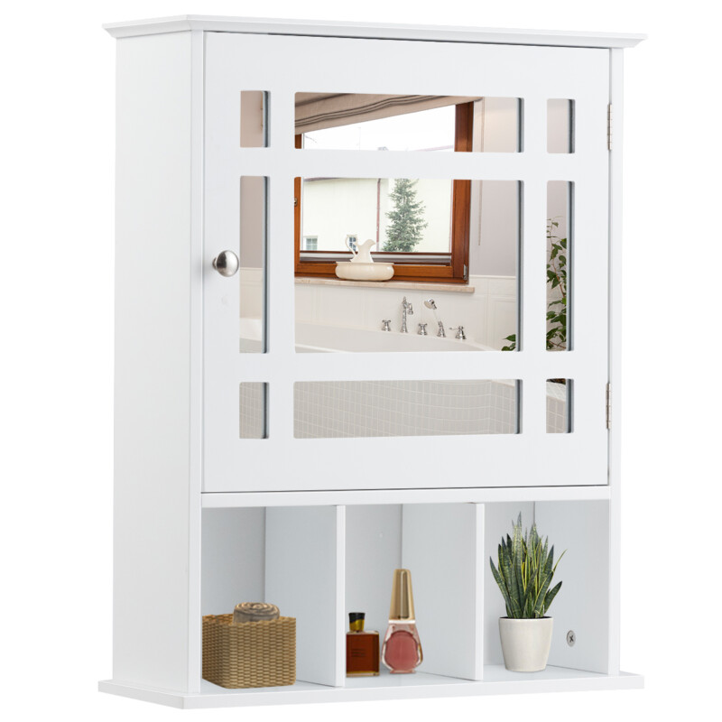 Costway Κρεμαστό ντουλάπι με ρυθμιζόμενο ράφι & ανοιχτά διαμερίσματα καθρέφτης 50 x 16 x 61 cm λευκό. JV10131WH