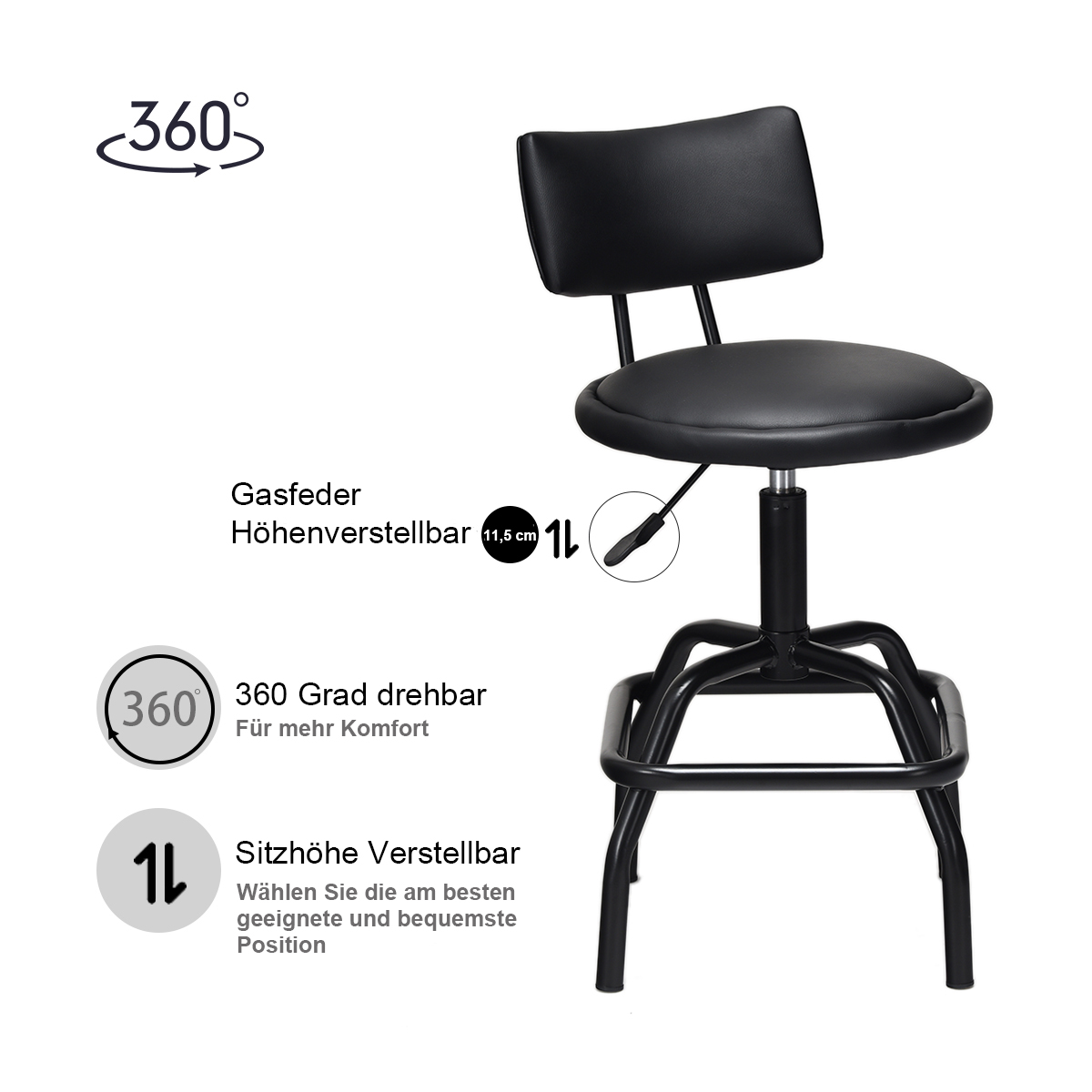- Απόλυτη Άνεση: Ο σκαμπό διαθέτει επενδυμένη πλάτη για άνετη στήριξη. Το κάθισμα είναι επενδυμένο με τεχνητό δέρμα. Τα πόδια σας μπορούν να στηριχθούν στο υποπόδιο.