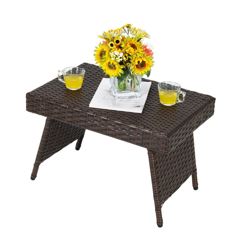 Πτυσσόμενο Τραπέζι Σαλονιού Εξωτερικού Χώρου Rattan 60 x 40 x 40 cm Costway HW69576