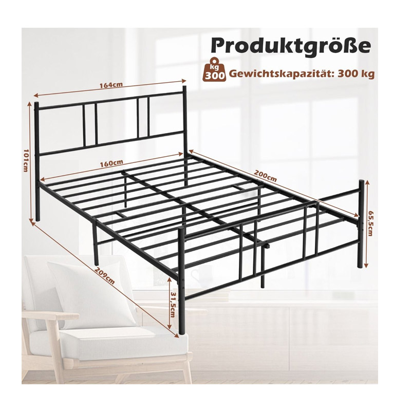 Το διπλό κρεβάτι, από την εταιρία Costway, έχει σκελετό από ατσάλι βαρέως τύπου και αντέχει βάρος έως 300 Kg. 10 στιβαρές ατσάλινες ράβδοι διασφαλίζουν ότι το πλαίσιο δεν θα ταλαντεύεται ούτε θα τρίζει όταν ξαπλώνετε του. Μια εξελιγμένη ράβδος απόσβεσης μειώνει την τριβή μεταξύ των ατσάλινων πηχών και του πλαισίου του κρεβατιού για έναν ξεκούραστο ύπνο. Επιπλέον, 5 ενδιάμεσα πόδια κατανέμουν ομοιόμορφα την πίεση και παρέχουν καλύτερη στήριξη σε ολόκληρο το πλαίσιο.
