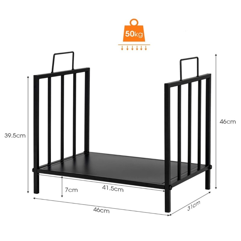 Αυτός ο κομψός και πρακτικός κάτοχος καυσόξυλων 46 εκ. με εργονομικές λαβές είναι η ιδανική επιλογή για εσάς. Κατασκευασμένος από ανθεκτικό ατσάλι με αντισκωριακή επιφάνεια, προσφέρει μακροχρόνια αντοχή και ανθεκτικότητα στις καιρικές συνθήκες. Μπορεί να αντέξει έως και 50 κιλά χωρίς παραμόρφωση.