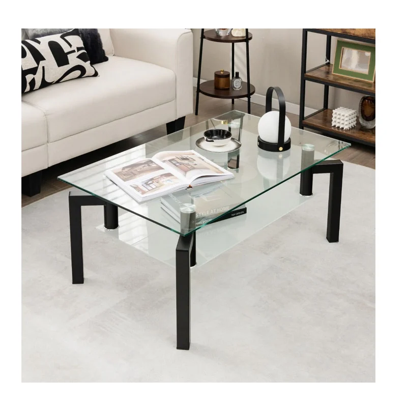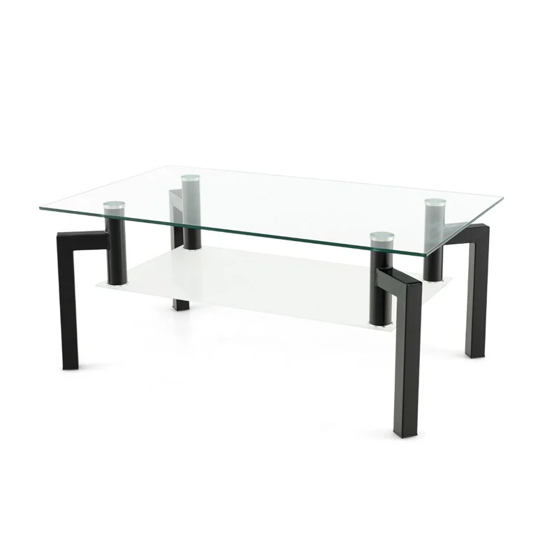 Το τραπέζι σαλονιού, από την εταιρία Costway, διαθέτει μαύρα μεταλλικά πόδια, για μέγιστη σταθερότητα. Η επιφάνεια του τραπεζιού από σκληρυμένο γυαλί πάχους 8 cm είναι λεία, αδιάβροχη και ανθεκτική στη θερμότητα. Στο κάτω μέρος έχει επιπρόσθετο ράφι από ματ γυαλί για επιπλέον αποθηκευτικό χώρο.