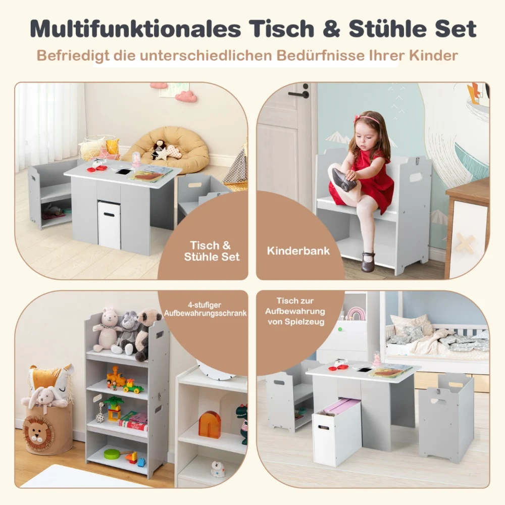 Costway Σετ 3 τεμαχίων με τραπέζι & καρέκλες για παιδιά 4-σε-1,Γκρι & Λευκό. Διαστάσεις τραπεζιού 70 x 45 x 47 εκ., καρέκλας: 41 x 25 x 44 εκ. HY10119GR